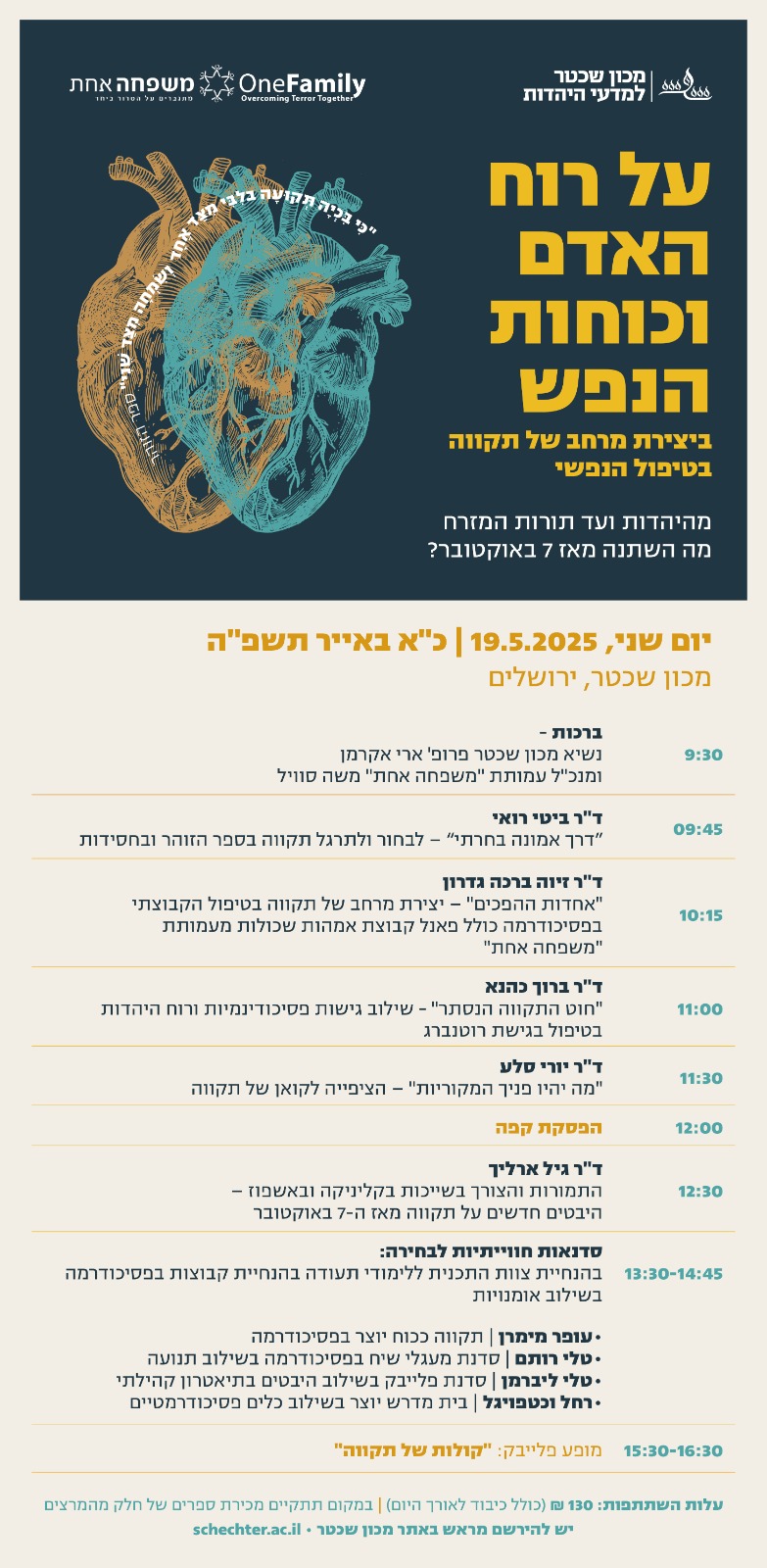 ב-19.5 במכון שכטר - יום העיון הגדול מהבוקר.