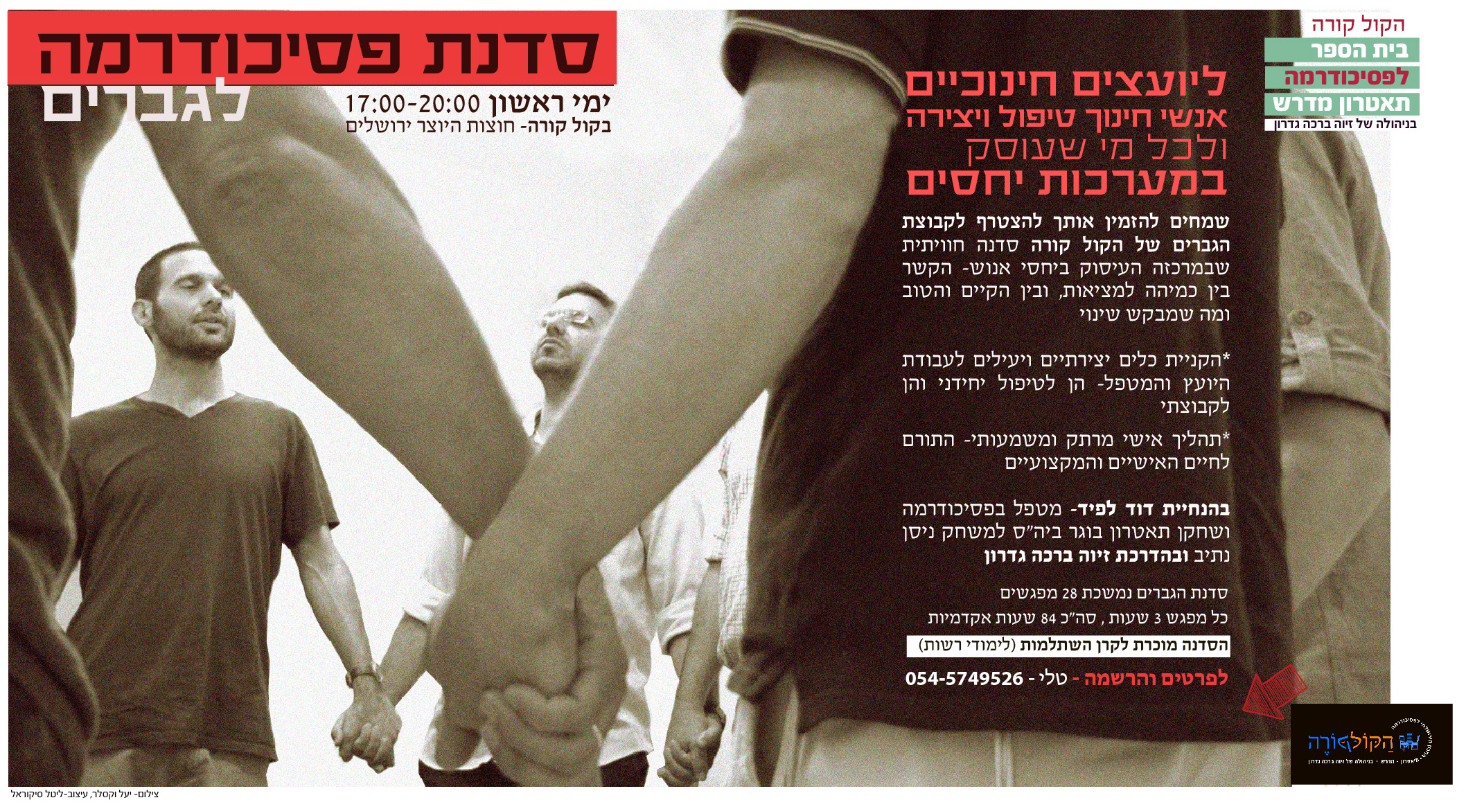 סדנת גברים פסיכודרמה לגברים בהנחיית דוד לפיד וזיוה ברכה גדרון